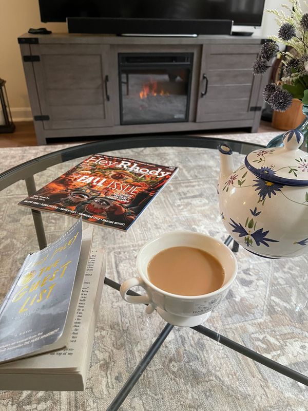I love grey days sitting by a fire having chai or a glass of red wine. The fall is my favorite season in New England.