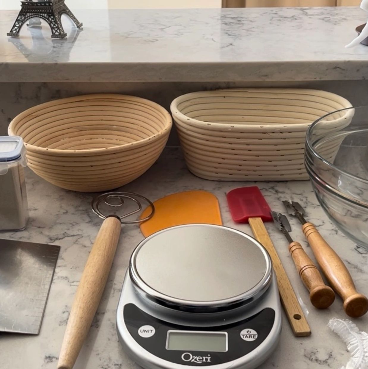 I really felt special when I got my first banneton. When first learning, I didn't want to invest in anything that I thought I may not stick with, but making delicious sourdough was so addictive that I wanted the real deal. A Banneton or proofing baskets is made out of natural fibres and helps keep shape to your dough while it is in the Cold retard stage. It is either round or oval. I got a starter set that actually had a round and oval basket with a danish dough whisk, dough scraper, bench scraper and a lame. You can buy individually but it may be more economical in the long run.